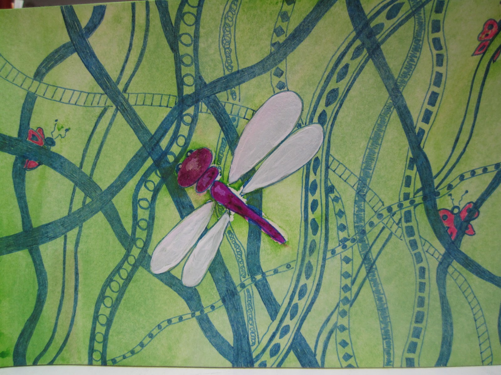 using my moleskin journal - Sharpie permanent ink - then the next step is a watercolor wash after I have used maskit on my little critters of flight... we'll see how it goes.